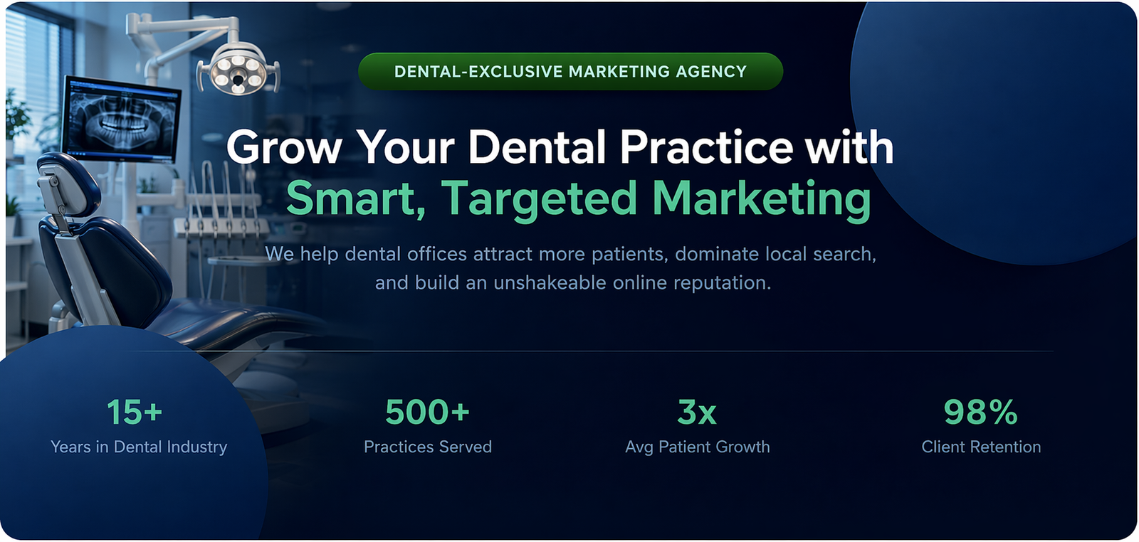 We exclusively serve the dental industry. Our team understands dental patient behavior, procedure-specific targeting, HIPAA compliance requirements, and the revenue cycle of a dental practice.